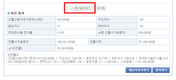 계산결과보기를 누르시면 그 아래 계산값이 나오게 됩니다.