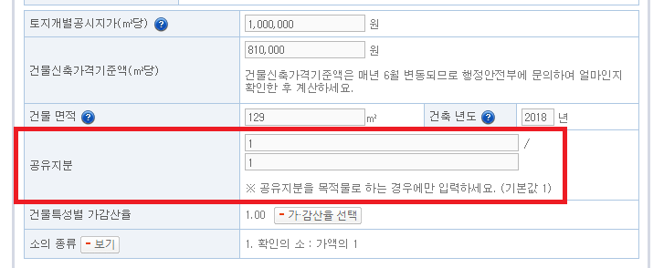 소송의 종류에 따라 공유지분을 건축물대장을 보고 입력하시면 됩니다.